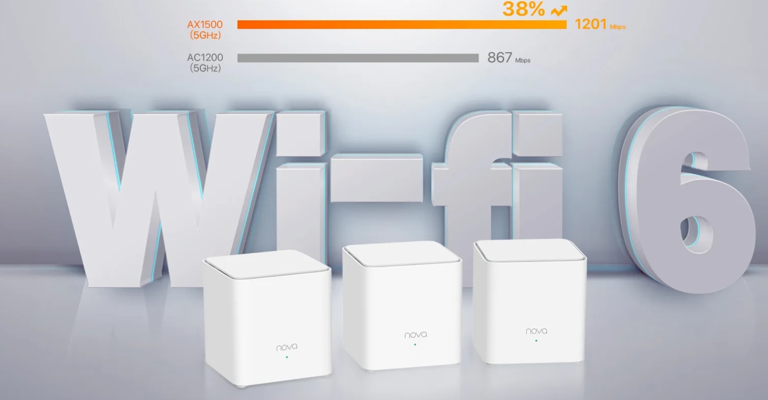 Dotat cu tehnologia Wi-Fi 6, viteza sa dual-band simultana ajunge pana la 1501 Mbps (5GHz: 1201 Mbps 2,4 GHz: 300 Mbps), mentinand viteza Wi-Fi 6 in intreaga casa.