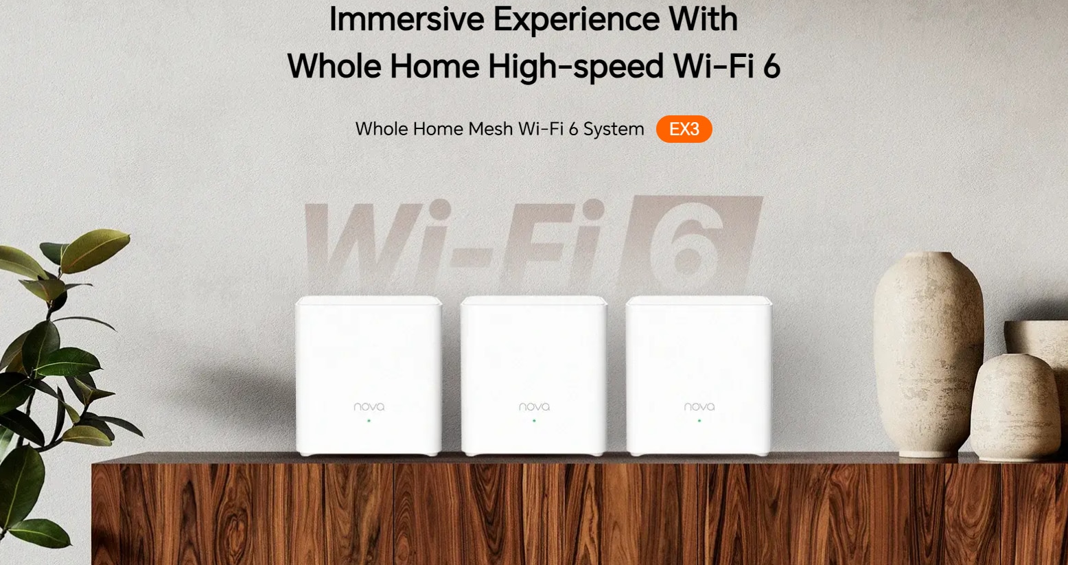 Descrierea produsului Sistem mesh TENDA EX3(3-pack), AX1500, IPTV, IPv6, OFDMA, MU-MIMO, Beamforming, WPA3, WPS Fast Connection, TR069, Amazon Alexa, Control Parental, Tenda App (Alb)