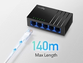 Distanta de transmisie suplimentara 140 de metri de transmisie Gigabit care adauga o distanta cu 40% mai mare in comparatie cu un switch standard, simplifica cablarea pentru spatii mai mari. |