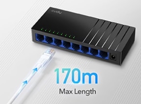 Distanta de transmisie suplimentara 170 de metri de transmisie Gigabit adaugand o distanta cu 70% mai mare in comparatie cu un switch standard, simplifica cablarea pentru spatii mai mari.