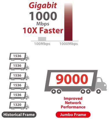 ES-5500G V3 este o soluţie excelentă pentru extinderea reţelei Gigabit. Prin viteza Gigabit, ES-5500G V3 vă oferă o înaltă flexibilitate şi o conectivitate cu o înaltă lăţime de bandă pentru servere, staţii de lucru şi alte dispozitive ataşate. Vă dă posibilitatea de a economisi timp la transferul unor fişiere mari. În completare, suportă, de asemenea, Jumbo Frames 9K pentru a îmbunătăţi utilizarea reţelei la transferul de fişiere mari.