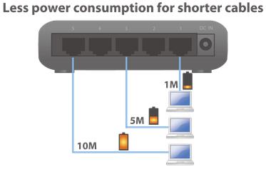Detectarea lungimii cablului: Dispozitivele echipate cu această caracteristică pot detecta automat lungimea cablurilor Ethernet conectate şi pot modifica corespunzător consumul energetic. Cum cât mai scurt este cablul, cu cât consumă mai puţină energie.