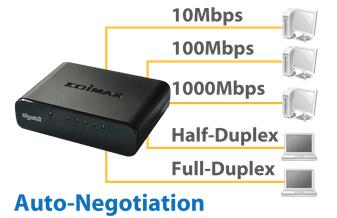 Fiecare port al ES-5500G V3 poate distinge automat dispozitivele de reţea conectate care funcţionează la 10Mbps, 100Mbps pentru modul duplex parţial/duplex integral. ES-5500G V3 poate regla viteza şi modul în mod corespunzător.