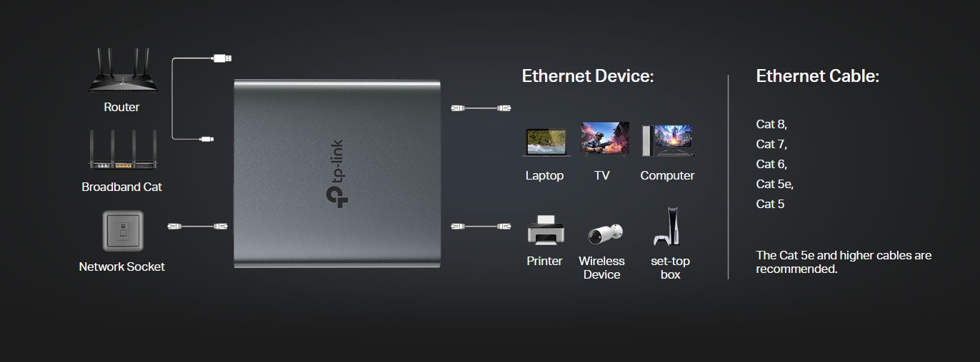 EH210 este compatibil cu cablurile Ethernet de retea Cat 8/7/6/5e/5 si poate fi utilizat cu hub-uri, switch-uri, routere, dispozitive wireless, computere si multe altele.