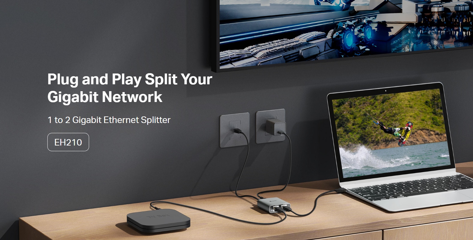 Descrierea produsului Splitter retea ethernet TP-Link EH210, gigabit, plug-in play