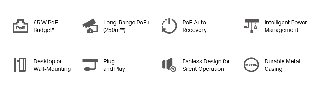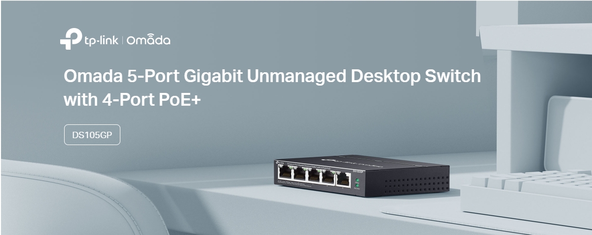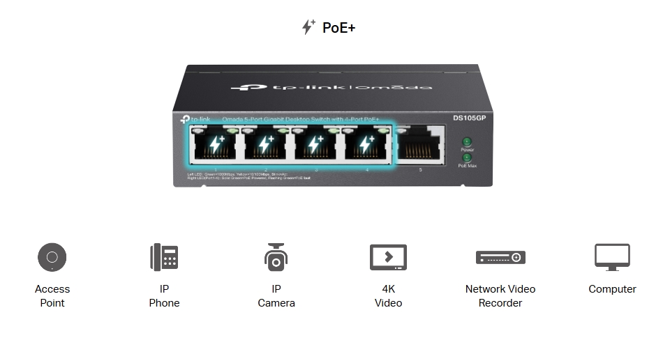 Descrierea produsului Switch TP-Link Omada DS105GP, 4 porturi, Gigabit, PoE+