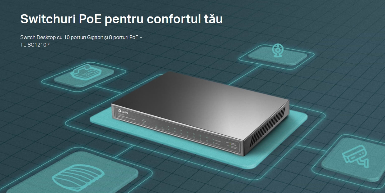 Descrierea produsului Switch TP-Link TL-SG1210P, 10 Porturi, Gigabit, PoE+