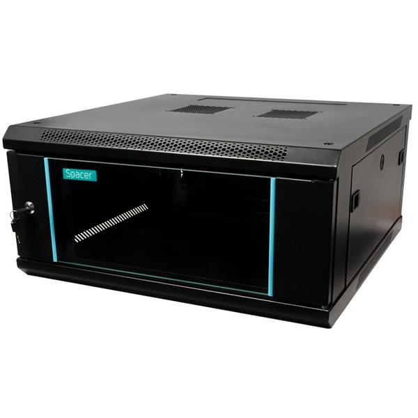 Cabinet 19″ SPACER 4U 600x600mm, fixare pe perete, Flatpack (dezasamblat), negru, panouri detasabile, otel 1.5mm, sarcina maxima 60Kg