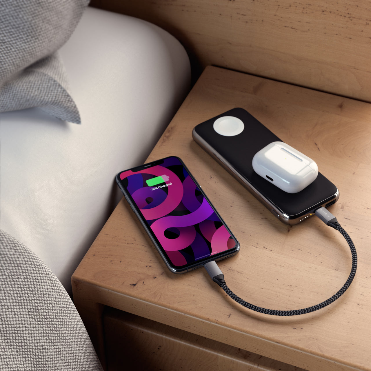 Alimentati-va dispozitivele Apple Lightning cu cablul de incarcare Satechi USB-C la Lightning, cu un conector reversibil USB-C, un design mai scurt al cablului si certificare Apple MFi pentru usurinta la incarcare. Cablul USB-C Lightning se imperecheaza perfect cu banca Quatro Wireless Power Bank sau incarcatorul de birou 108W Pro sau in timp ce va deplasati.