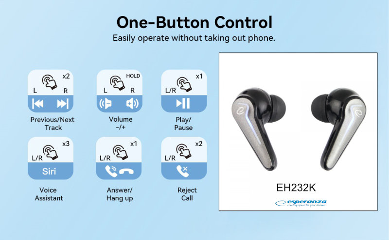 Descrierea produsului Casti True Wireless Esperanza Xenon 95840, Bluetooth, Touch control, Microfon (Negru)