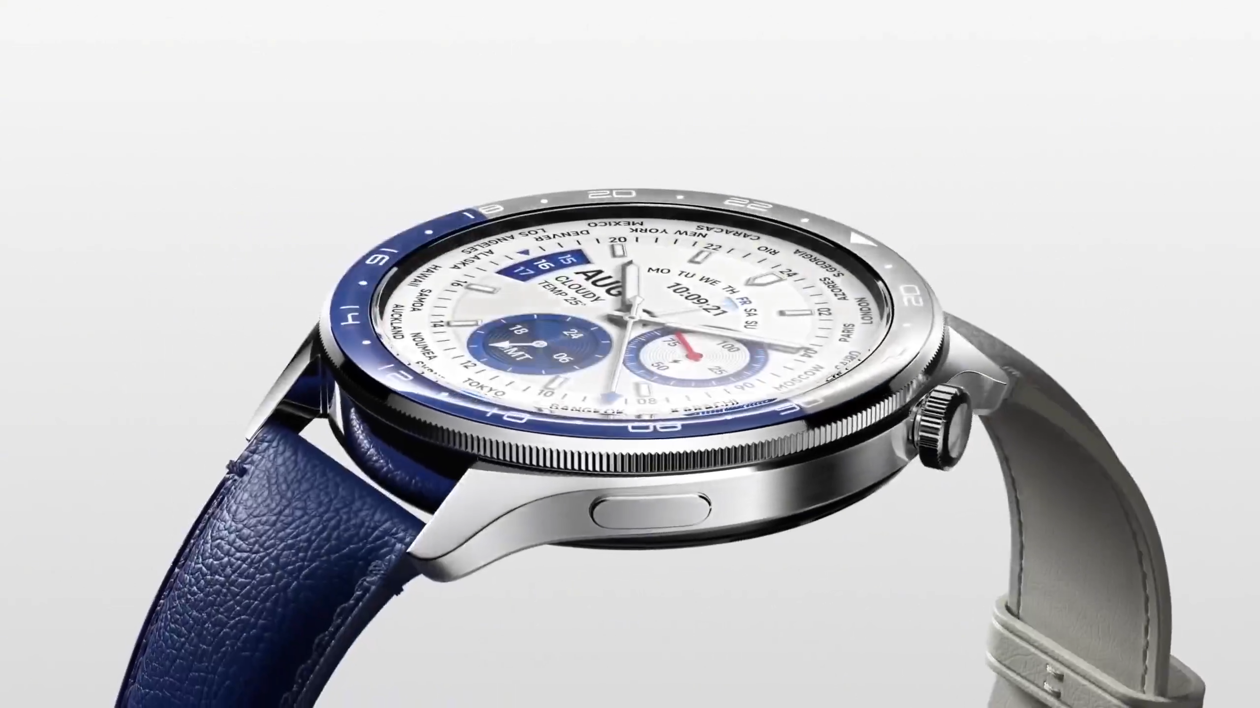 Rama ceramică albastru-gri în două tonuri prezintă un design cu două zone GMT cu un stil elegant și șic.