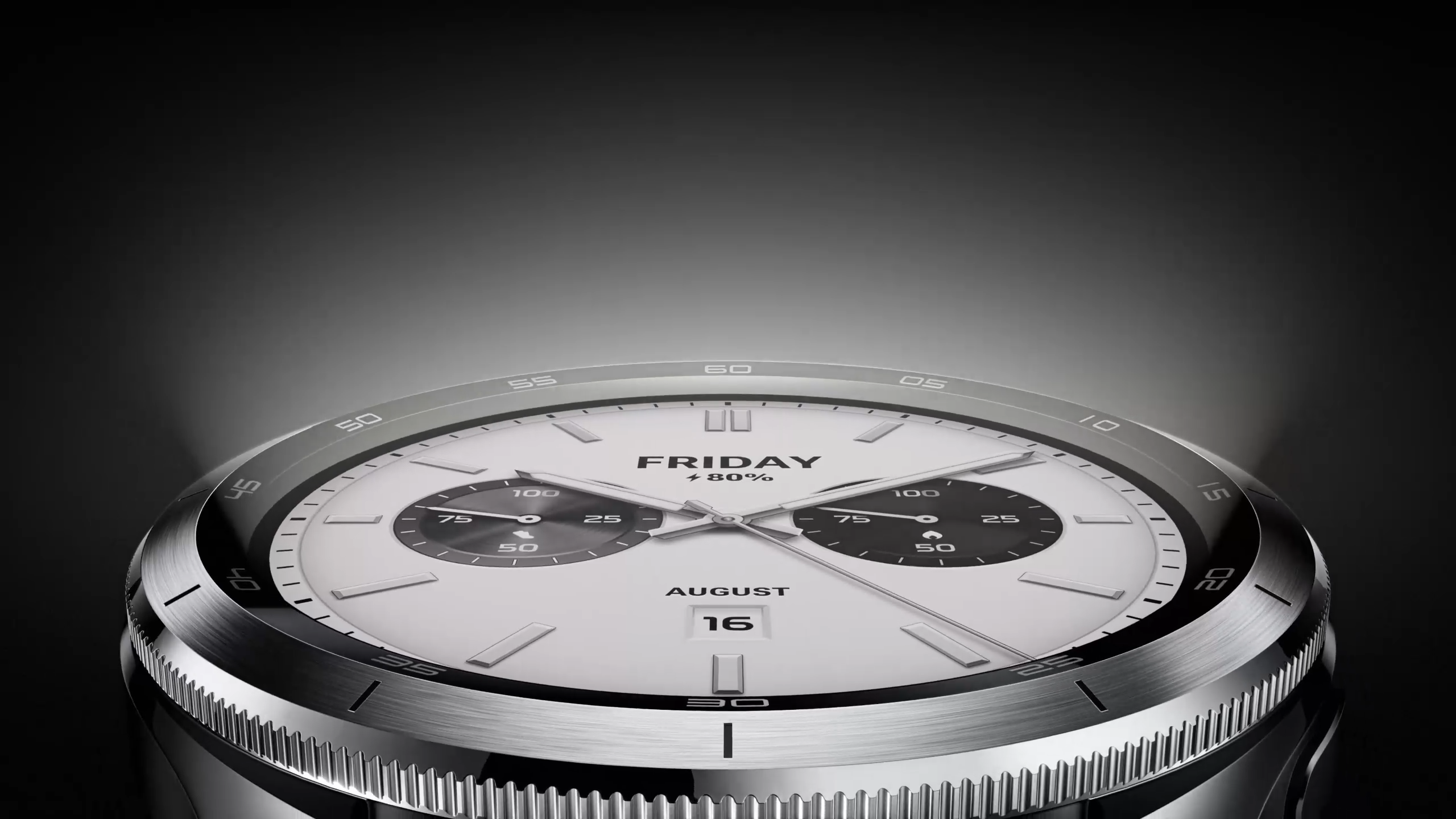 Rama gravată din oțel inoxidabil are marcaje clare și un luciu închis și discret.