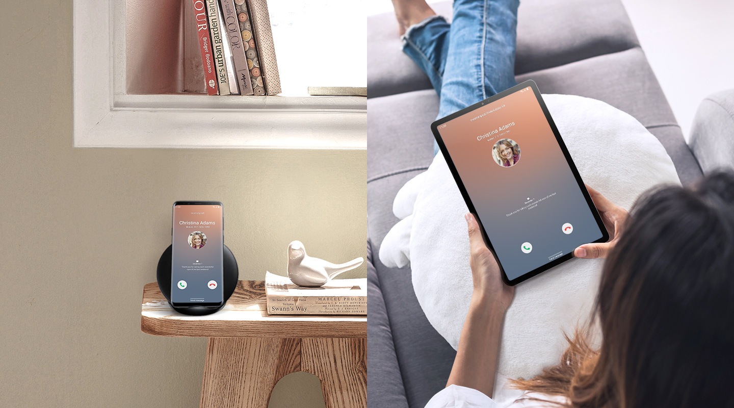 Păstrează legătura atunci când nu ai telefonul la îndemână. Galaxy Tab S5e se sincronizează perfect cu smartphone-ul tău Galaxy, astfel încât să nu pierzi niciun apel. De asemenea, îți permite să răspunzi la mesajele text urgente, astfel încât să rămâi informat.