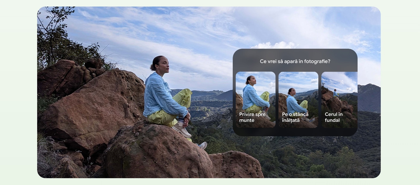 Functia Asistent de fotografie utilizeaza modelele Gemini pentru a citi atmosfera si a oferi sfaturi despre incadrare si iluminare cu usurinta. In sfarsit, prima ta fotografie este si preferata ta.