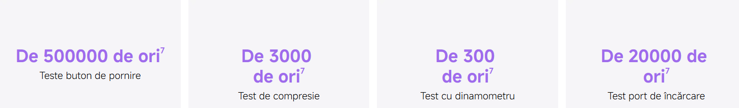 Chiar si dupa 1.600 de cicluri de incarcare completa, bateria mentine in continuare 80 % sau mai mult din capacitatea sa initiala.