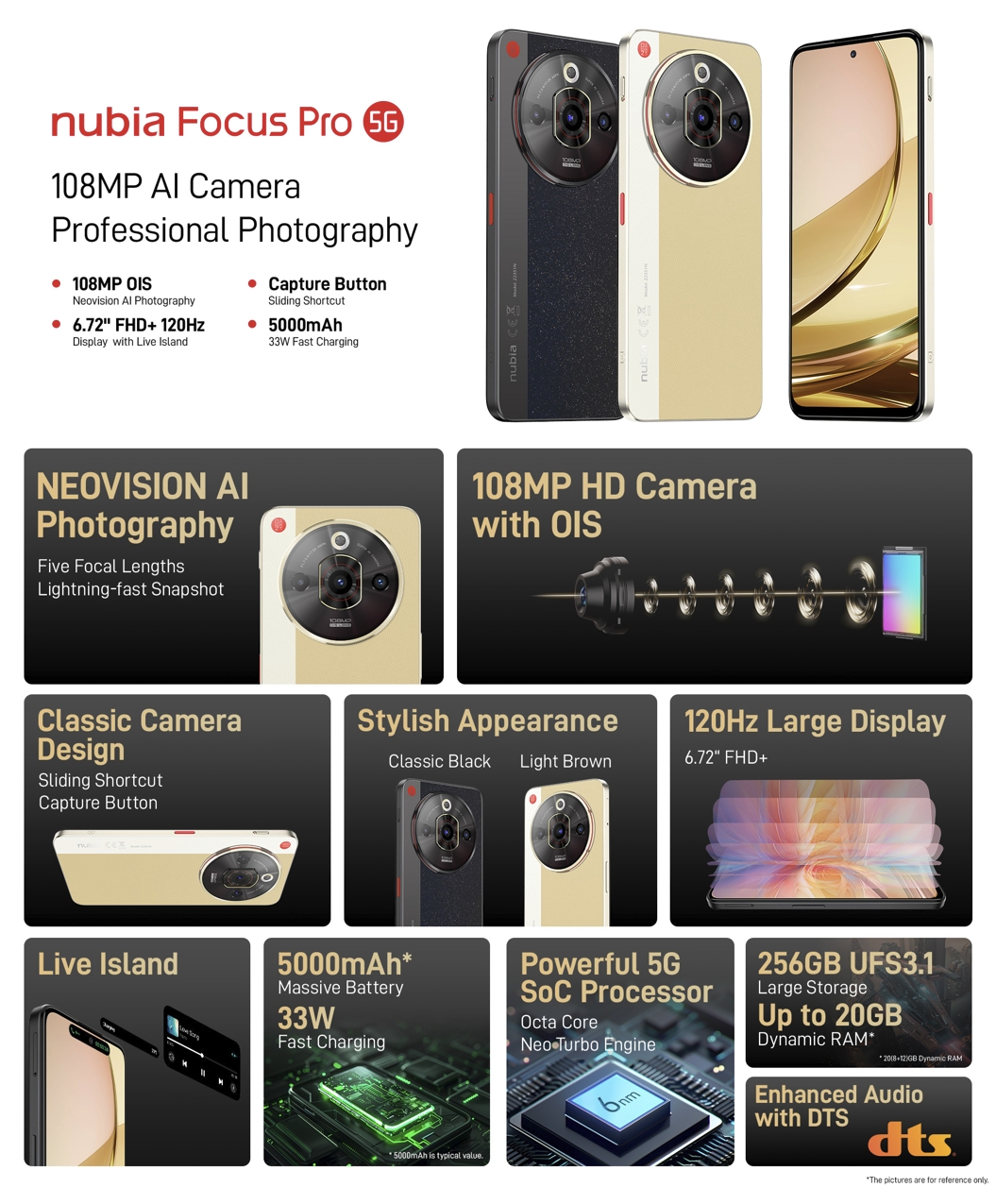 nubia Focus Pro 5 G este echipat cu noul sistem de fotografiere NEOVISION AI , care se mandreste cu o gama puternica de caracteristici, inclusiv camera de 108MP, stabilizarea optica a imaginii, scurtatura ergonomica glisanta personalizata, buton de captura, cinci distante focale, care satisfac toate scenariile de fotografiere, modul de noapte super RAW, RAW HDR, fotografia de strada, modul portret, video 4K, camera frontala de 32MP si multe altele - asigurand fotografii uimitoare cu fiecare fotografie.