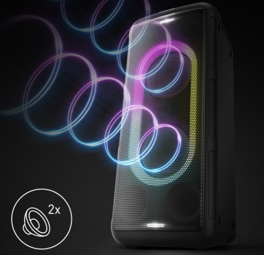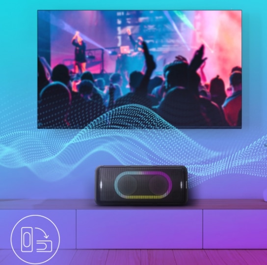Pentru mai multa distractie, conectati TMAX la un televizor cu ajutorul cablului optic furnizat. In timp ce televizorul inteligent afiseaza imaginile si versurile karaoke, TMAX se ocupa de restul - cu intrarea sa pentru microfon, cu sunetul puternic si stroboscopul. TMAX este ideala si pentru petrecerile care celebreaza marile festivaluri de muzica si concursurile muzicale mult asteptate. Panasonic TMAX45 poate fi asezata pe o parte, astfel incat sa nu va strice privelistea.