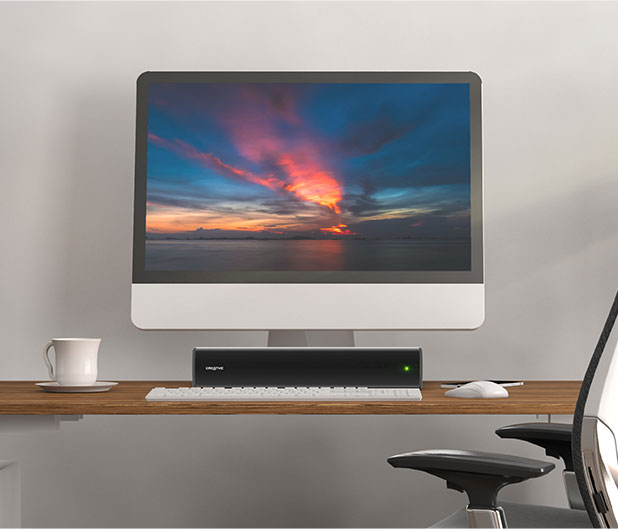 Cu Creative Stage Air V2, nu veti avea probleme in a-l plasa oriunde, chiar si pe desktop! Masurand doar 410 x 94 x 75 mm / 16,1 x 3,7 x 2,9 inci, bara de sunet este suficient de compacta pentru a se potrivi fara efort sub monitorul dvs. pentru a minimiza dezordinea.