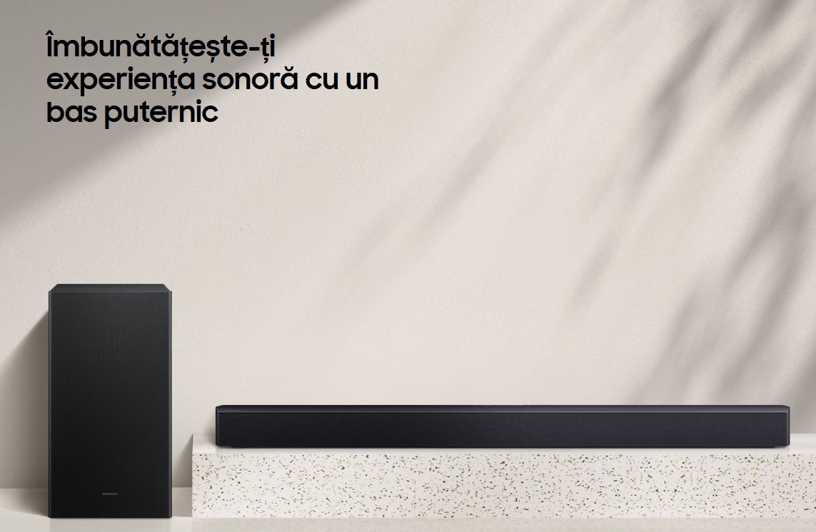 Descrierea produsului Soundbar Samsung HW-B450F, 2.1, 300W, Bluetooth, Wi-Fi, Subwoofer wireless, Dolby Audio, HDMI eARC, Negru