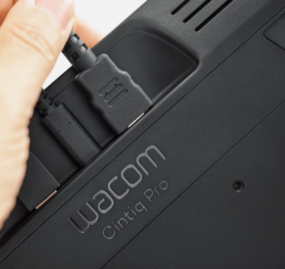 Conectati-va si jucati Conectarea Wacom Cintiq Pro 16 la Mac sau la PC-ul cu Windows se face fara efort. Tot ce trebuie sa faceti este sa conectati cablurile USB-C si HDMI - fie ca aveti tableta la birou sau in poala dvs. Si puteti sta linistit stiind ca toate cablurile sunt proiectate in mod durabil, fara PVC. | ![]() |