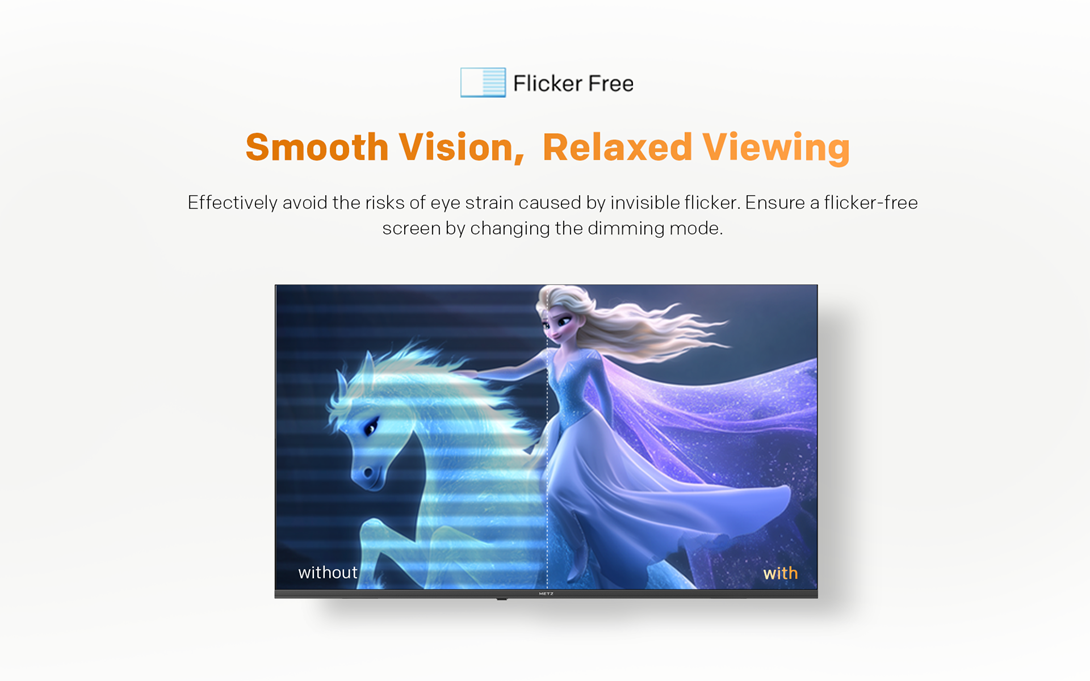 Protejati-va sanatatea evitand in mod eficient efectele nocive ale flash-urilor invizibile si reducand palpairea ecranului. Cu noul nostru mod de estompare inteligent, va puteti bucura de o experienta vizuala mai confortabila si sigura, minimizand oboseala ochilor si oferindu-va linistea de care aveti nevoie. Alegeti sa va protejati cu tehnologia care conteaza.