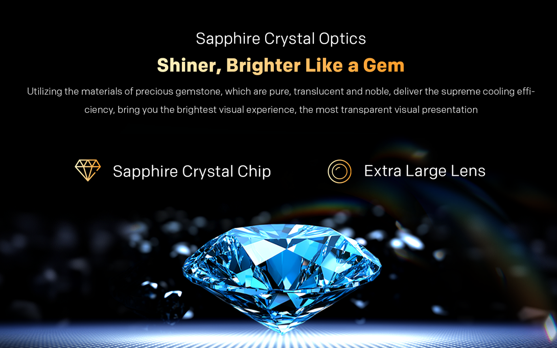 Folosind materiale inspirate de pietre pretioase – pure, translucide si rafinate – tehnologia Sapphire Crystal ofera o eficienta termica exceptionala si o calitate optica de neegalat.