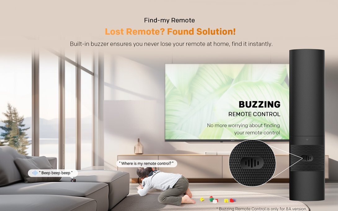 Televizorul are un buzzer incorporat care te ajuta sa gasesti imediat telecomanda, oriunde s-ar afla in casa.