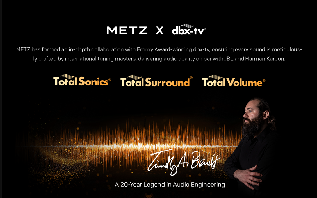 METZ a incheiat un parteneriat aprofundat cu dbx-tv, castigator al premiului Emmy, asigurand ca fiecare sunet este meticulos calibrat de catre un maestru international al reglajelor audio.