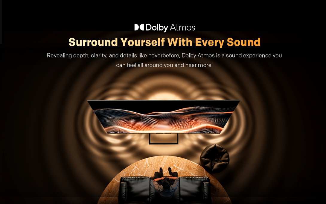 Dolby Atmos dezvaluie profunzime, claritate si detalii ca niciodata pana acum. O experienta audio care te invaluie complet, facandu-te sa simti si sa auzi mai mult ca niciodata.