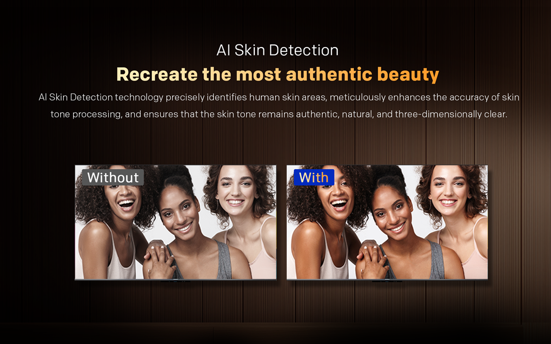 Tehnologia AI Skin Detection identifica cu precizie zonele de piele din imagine si optimizeaza fin procesarea culorii, asigurand un ton natural, echilibrat si realist.