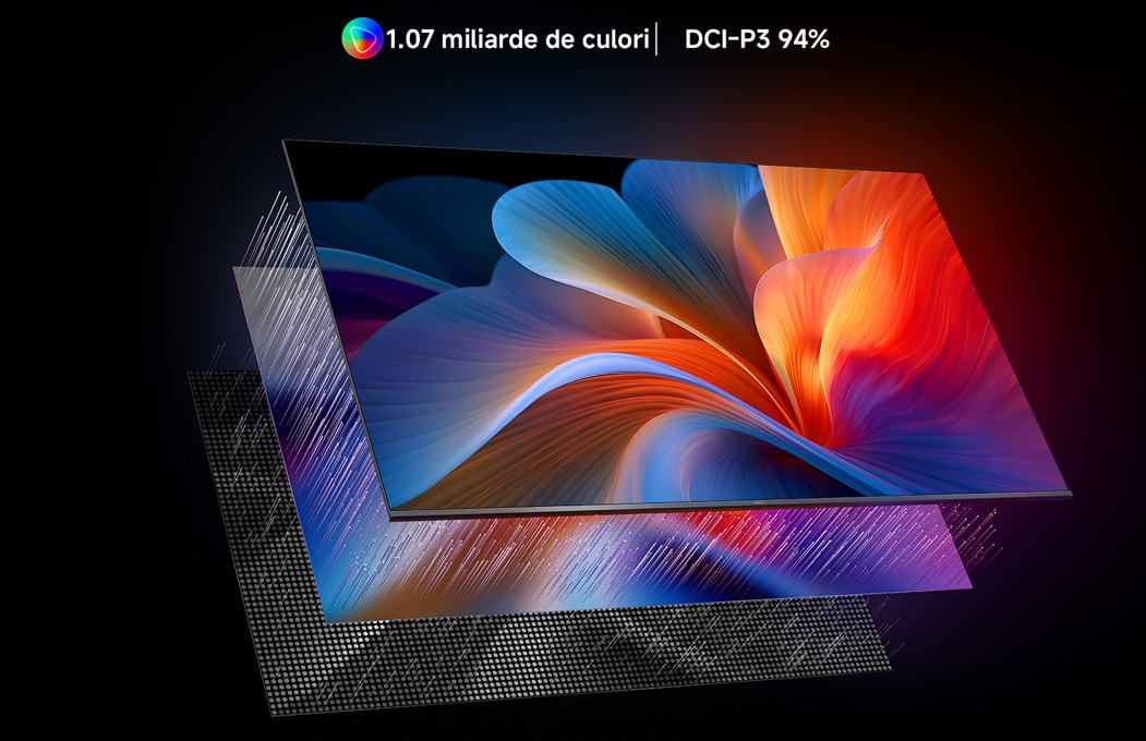 Display-ul QLED cu o gama larga de culori si o ajustare precisa a culorilor ofera imagini mai captivante si mai realiste. Adoptand standardul de gama cromatica DCI-P3 utilizat la Hollywood, acesta produce culori vibrante, hipnotizante.